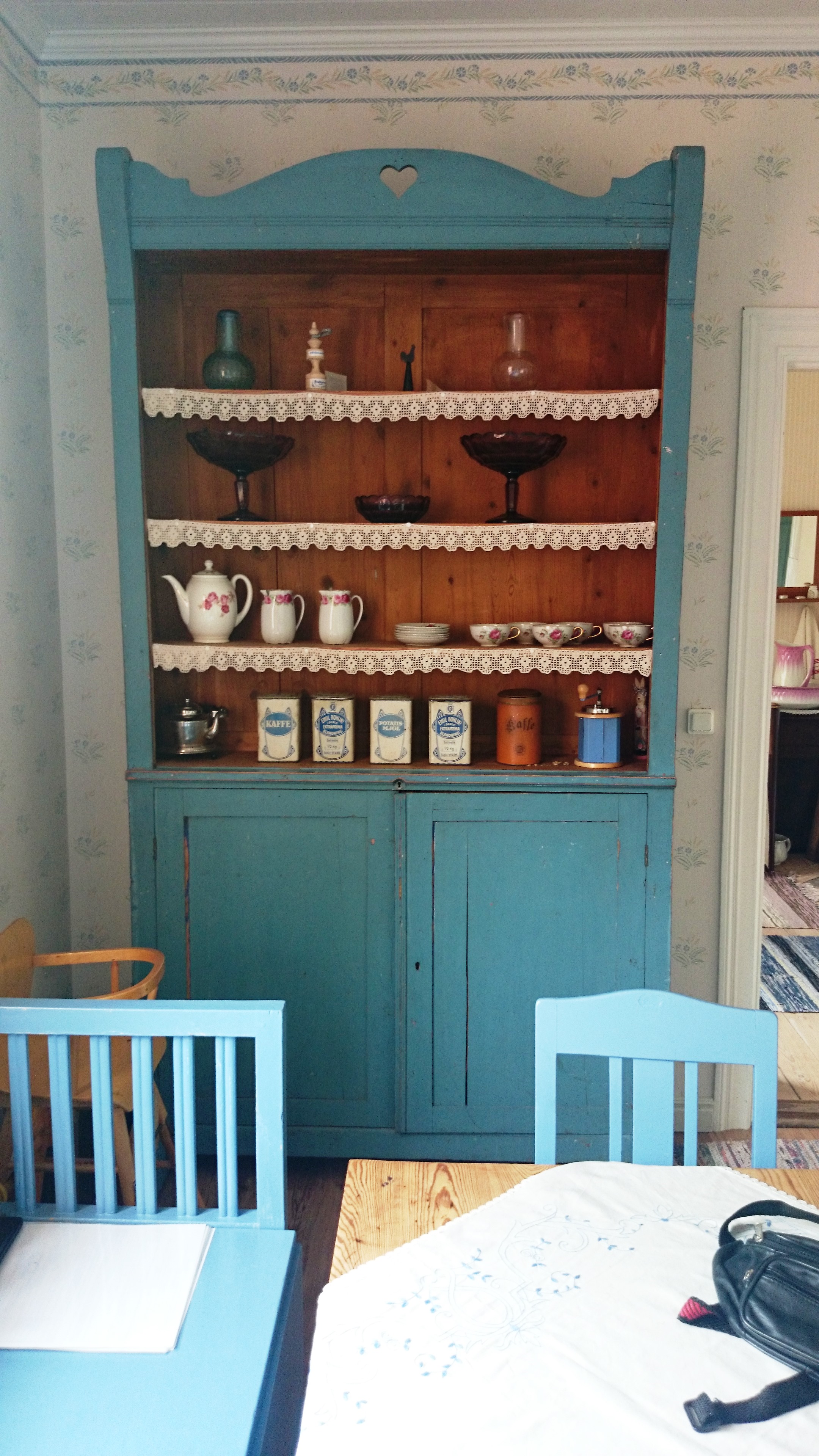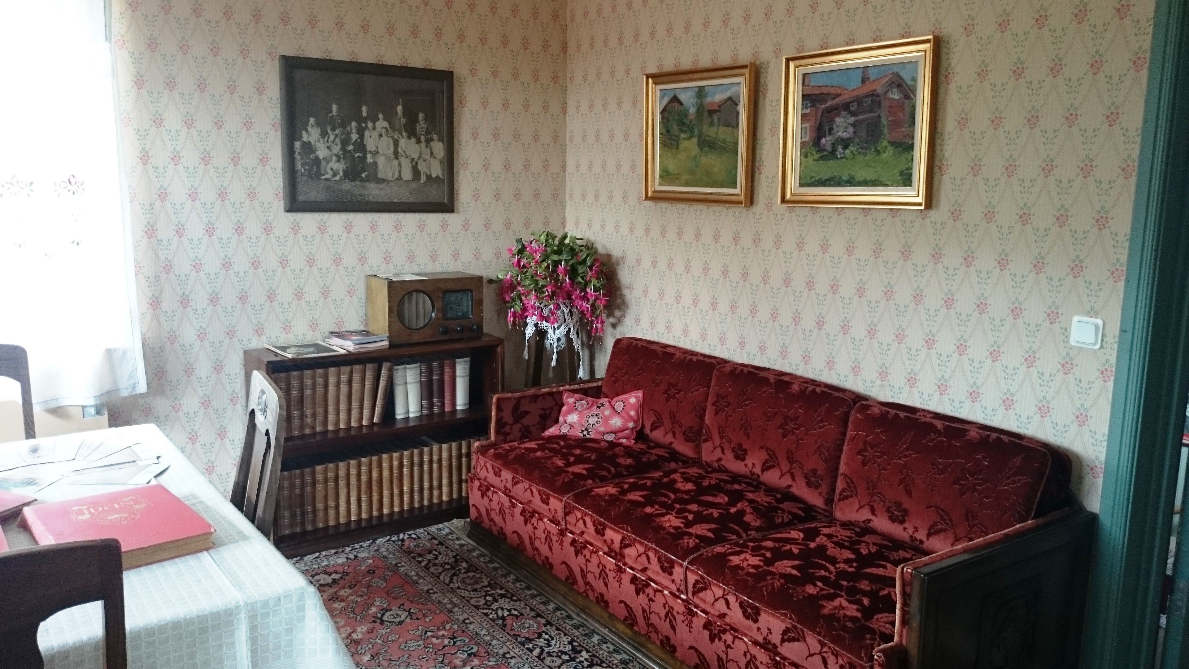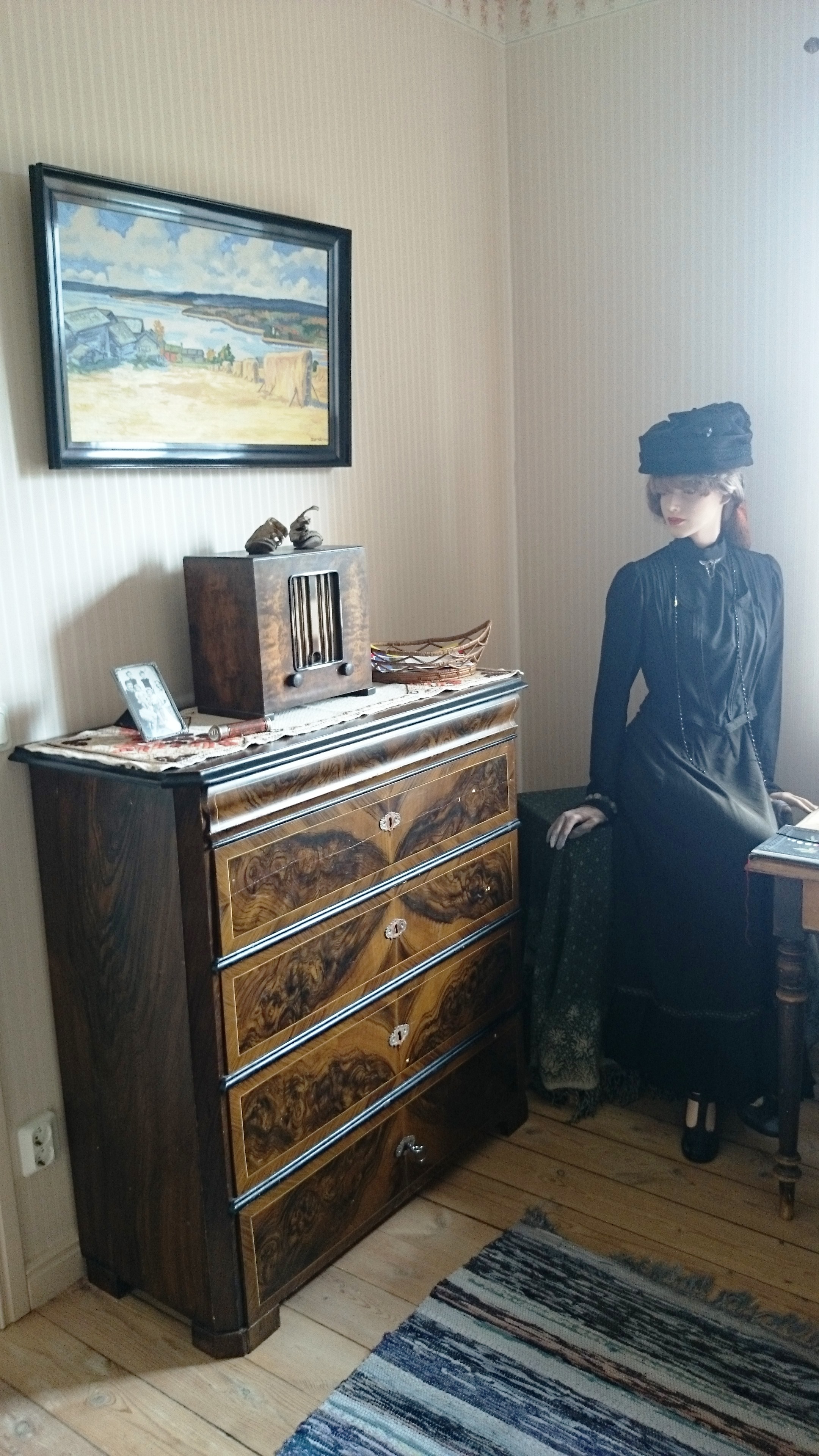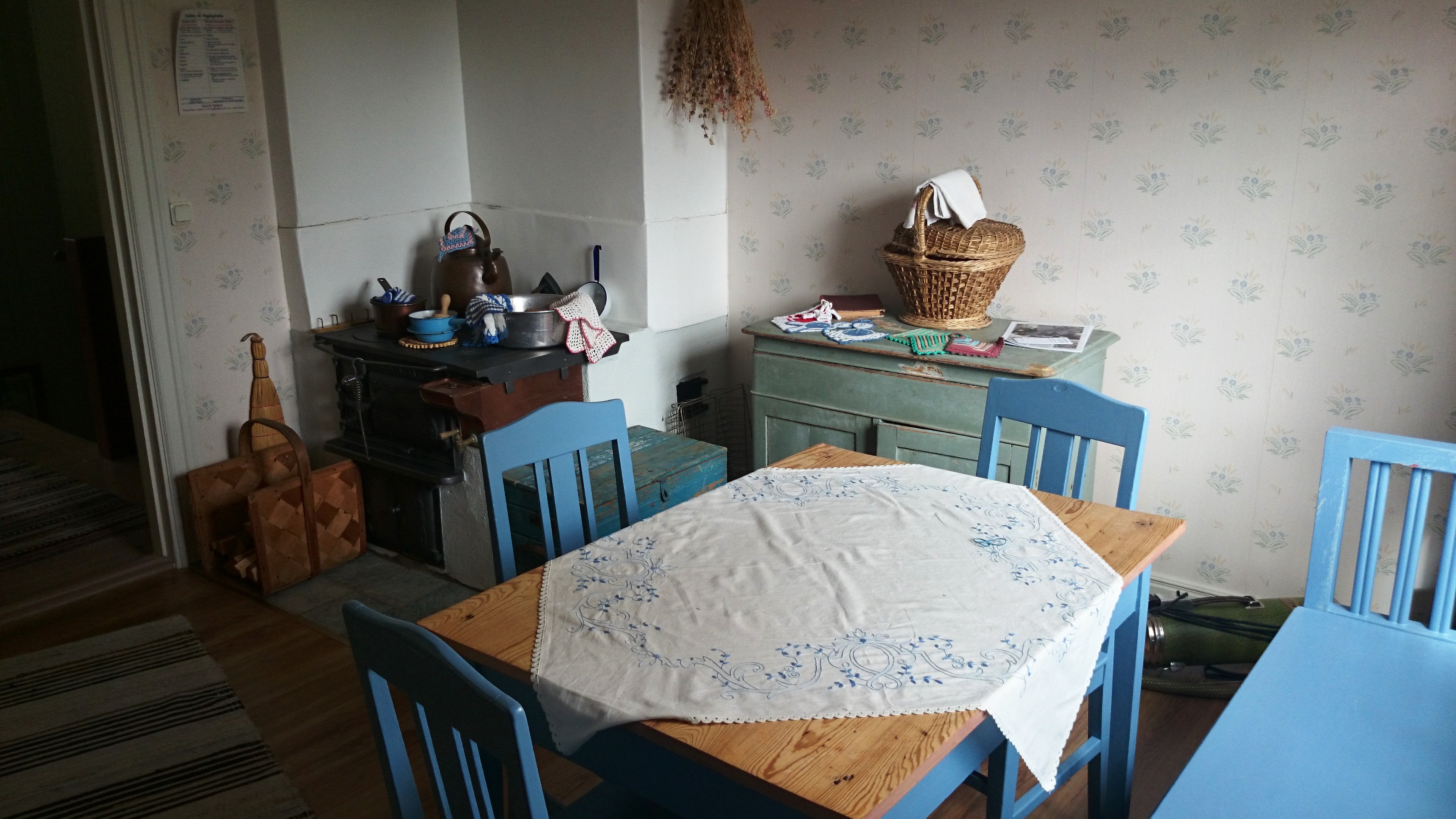 På övervåningen i bygdegården har vi inrett en museimiljö som föreställer en gammal lärarbostad. Övervåningen är öppen i samband med till exempel Skebergsdagarna.